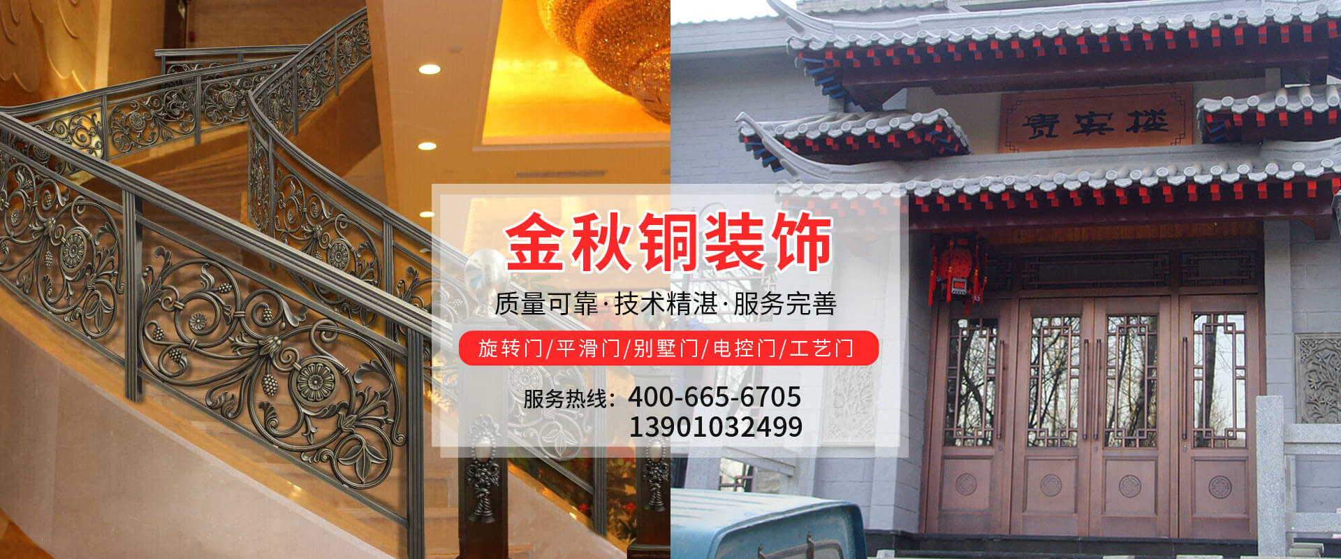 北京金秋銅裝飾材料有限公司是專業(yè)生產(chǎn)銅裝飾材料及設(shè)計(jì)、開發(fā)、制造、施工、售后服務(wù)為一體的大型綜合企業(yè)。可承接建筑銅裝飾工程及五星級(jí)酒店、別墅、博物館、樓樘管所等高檔銅裝飾項(xiàng)目;生產(chǎn)各種規(guī)格的旋轉(zhuǎn)門、平滑門、別墅門、電控門、工藝門、旋轉(zhuǎn)護(hù)欄、屋頂銅飾防水瓦、浮雕壁畫......